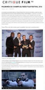 Article de presse très sympathique de « Critique-Film.fr » sur le palmarès des Champs-Élysées Film Festival ! « Le Prix du Public du court-métrage français a...