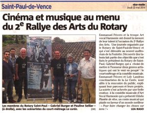 Emmanuel Fricero a donné la mesure de son talent… Article de presse sur le 2e Rallye des Arts du Rotary paru le 22...