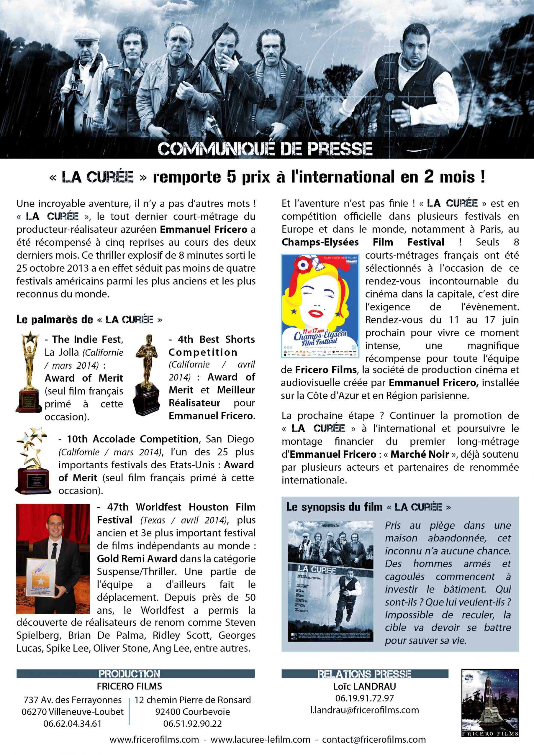 « La Curée » a pris son billet pour… l’Indonésie ! Après son grand succès aux Etats-Unis (5 récompenses en 2 mois), le dernier film d’Emmanuel Fricero conquiert un nouveau continent : l’Asie. « La Curée » a été sélectionné en compétition officielle au 2nd World Film Awards de Jakarta qui se tiendra du 4 au 16 juin prochain.